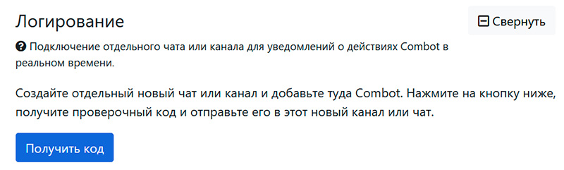 Подключить имеет смысл: вы по этому чату сможете видеть все действия Combot, что бывает полезно. Нужно создать отдельный чат, добавить туда Combot администратором, получить в этом разделе код и отправить его в этот отдельный чат.