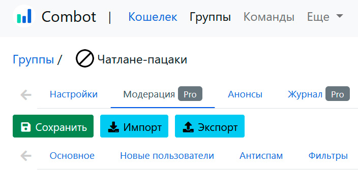 В заключение давайте перечислим порядок действий по созданию чата и подключения Combot для его модерирования: