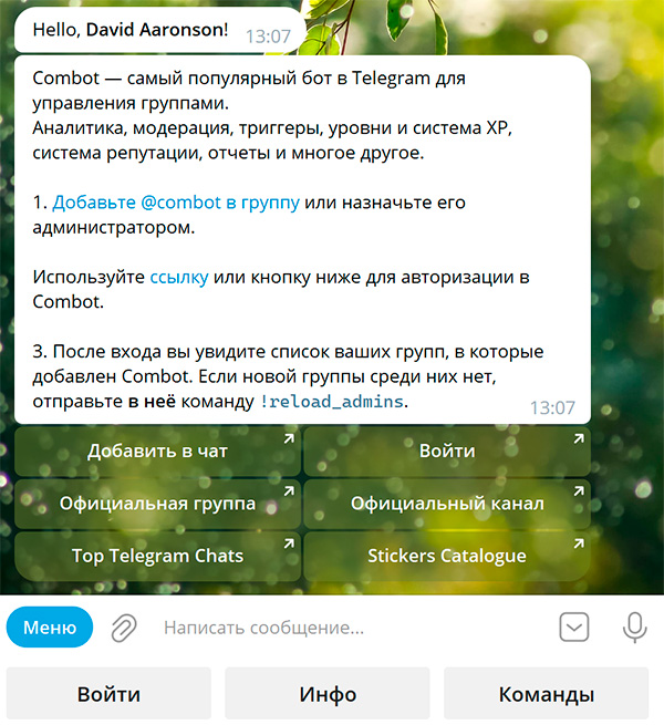 4. Работа Combot в чате