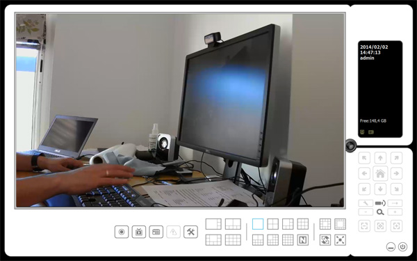 В консоли можно вручную делать скриншоты и видеозапись, распределять подключенные камеры (до 32) на экране в различных режимах просмотра, запускать режим попеременного включения различных камер, управлять камерами, если они имеют соответствующий привод.