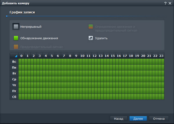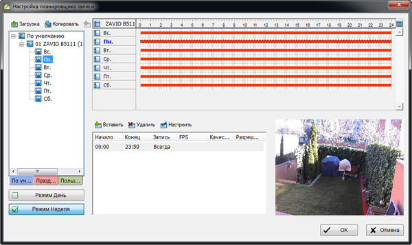 Все остальные настройки выставляете под себя: параметры записи видео, режим срабатывания, расписание записи, действие при переполнении диска и так далее.