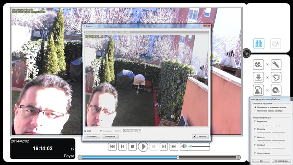 Записи можно редактировать путем наложения различных фильтров (видимость, резкость, контраст), также можно делать скриншоты и приближать какие-то участки кадра.