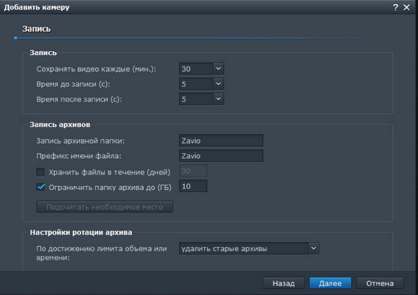 Если у вас есть NAS (сетевой накопитель) с сервером видеонаблюдения, а такие функции присутствуют во многих современных, причем даже недорогих NAS, то проще использовать именно NAS. (Кстати, производитель пишет,что они плотно занимаются интеграциейкамеры с российскими разработчиками ПО длявидеонаблюдения, так что есть полная поддержка камер ZAVIO всистемах "Линия", "TRASSIR", "MACROSCOP"и других.)