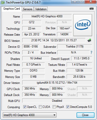 Графическая система: Intel HD Graphics 4000 (до
