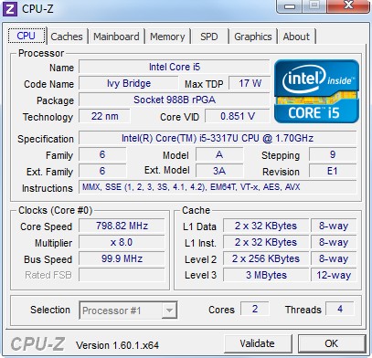 Процессор: Intel Core i5-3317U