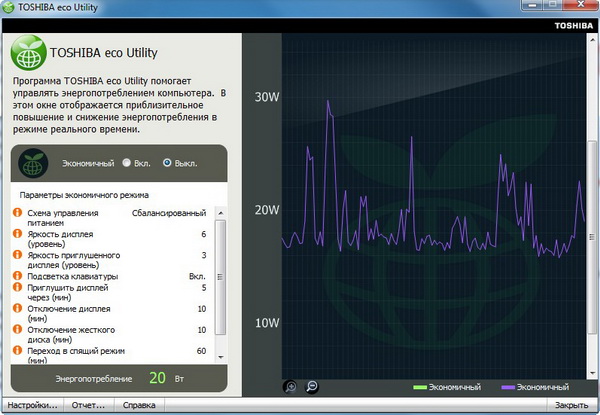 Toshiba eco Utility - программа для тонкого тюнинга энергопотребления. Наглядная и удобная.