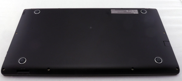 Нижняя поверхность ультрабука имеет скругленные углы и также покрыта пластиком Soft Touch.