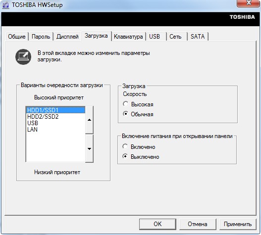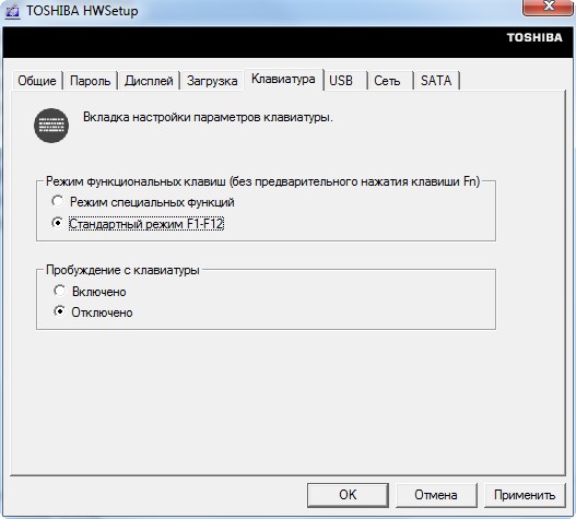 В программе HWSetup можно поменять различные параметры. В частности, режим функциональных клавиш, параметры загрузки и так далее.
