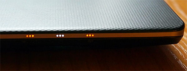 Верхняя крышка сделана из полированного алюминия, а нижняя часть крышки отделана ребристым покрытием Soft Touch, что позволяет ультрабук уверенно держать в руках, не боясь, что он выскользнет. Кроме того, такое покрытие вкупе с пропорциями придает устройству вид какой-то диковинной записной книжки (собственно, notebook - это записная книжка и есть).