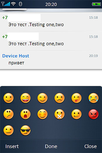 Вторая функция телефона - принимать и отправлять SMS. Тут никаких красивостей не наблюдается, как в iPhone, но функционирует нормально. Адресат можно выбрать из списка контактов.