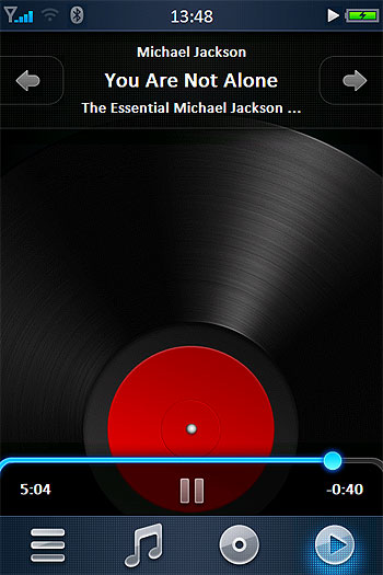Аудиоплеер слегка слизан с айфонного. Выглядит симпатично, управляется удобно.
