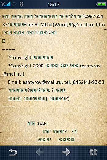 Там установлена какая-то программа EBooks, которая, по идее, должна позволять читать книжки. Из всех предложенных форматов она поняла только TXT, но с кириллицей там возникли ожидаемые проблемы - вот такие.