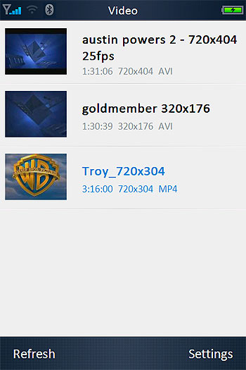 С видео тут все ОЧЕНЬ круто. Я сначала ради хохмы скормил устройству ролик 720×404 (DivX) - чтобы посмотреть, как он будет тормозить. Но, к моему большому удивлению, штатным плеером коммуникатор проигрывал этот ролик без каких-либо тормозов! Подсунул ему MP4 (AVC1) 720×304 - также воспроизвел отлично!