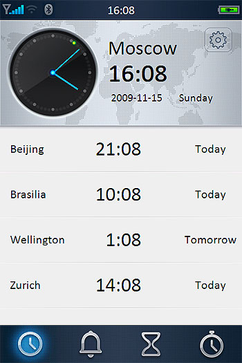 С часами все в порядке: мировое время, будильники, отчет нужного времени, секундомер. Будильники сделаны по типу айфонных.