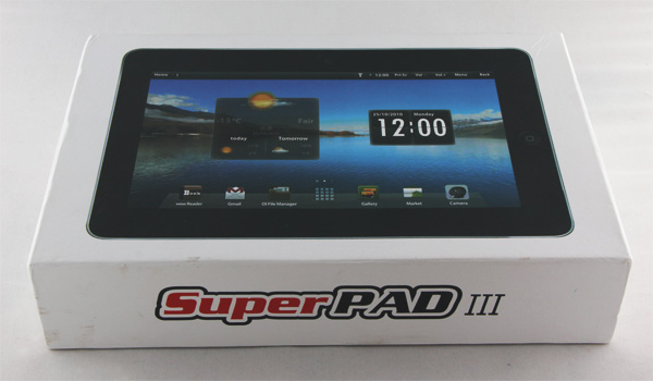 На коробке с планшетом, как водится, его название не написано, а красуется только гордая надпись SuperPad III. Да супер, супер, кто бы сомневался.