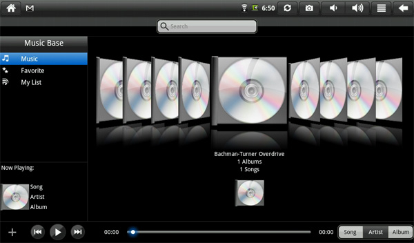 Музыка - тоже свое приложение. Простенькое, но вроде терпимое. Отбор только по композициям, артистам, альбомам. Просмотр треков - только один вид.