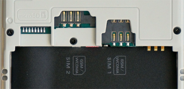 Там видны слоты под SD-карту и две симки. Что интересно, тут один слот под miniSIM, другой - под microSIM. В общем, это хорошее решение.