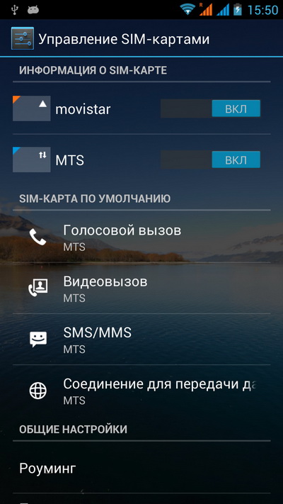 Обычные андроидные настройки, но с некоторой спецификой, связанной с двумя симкартами.