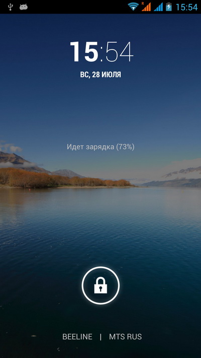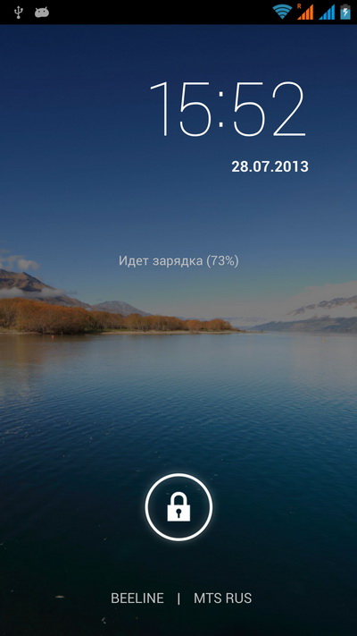 Экран блокировки. Если есть пропущенные сообщения или звонки, на экране появляются соответствующие пиктограммы.