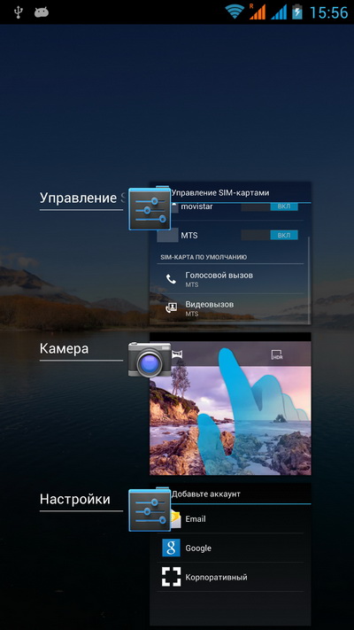 Список последних запущенных задач вызывается длинным нажатием по кнопке "Домой".