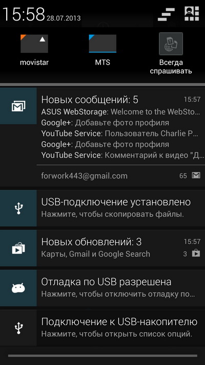 Когда запущено приложение, использующее сим-карту (сообщения, телефон) в области уведомлений появляется вот такая панель, в которой можно выбрать соответствующую сим-карту или предложить задавать вопрос.