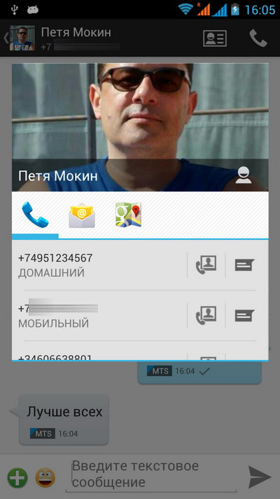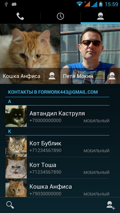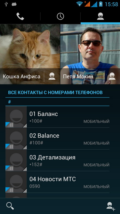 Само приложение - обычное андроидное, то есть довольно неудобное. А неудобно оно тем, что в режиме телефона вызывается урезанный вариант контактов: например, там нет избранного.