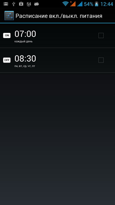 Дополнительная возможность - включение/выключения питания. То есть телефон может самостоятельно выключаться и самостоятельно включаться по часам.