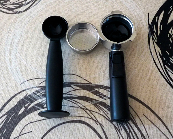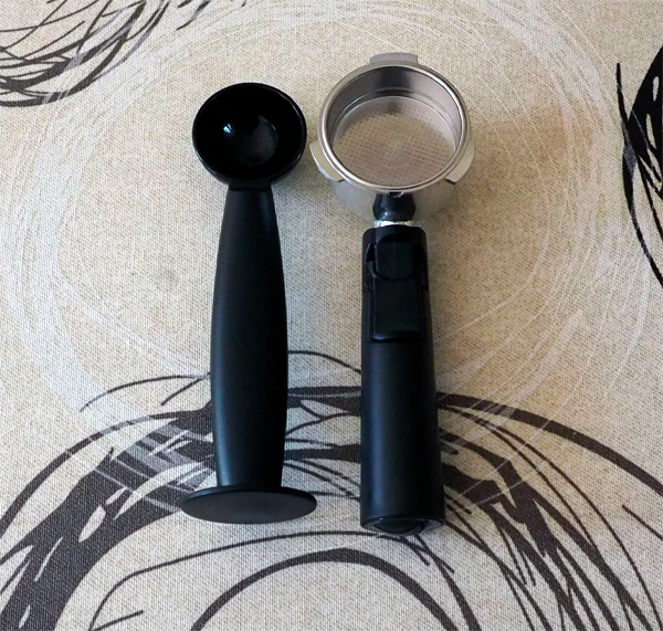 У меня кофеварка другой фирмы, совсем другая по дизайну (тоже простая, но с емкостью для молока), а "рожок" и ложечка-темпер - просто один в один.