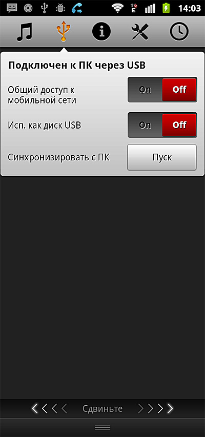 В Acer Iconia оболочка улучшена в сравнении с Liquid, например служебная строка с часами, батарейкой и уровнем сигнала перенесена вверх. На экран можно вытаскивать виджеты и в отличии от Samsung galaxy ее можно отключить.