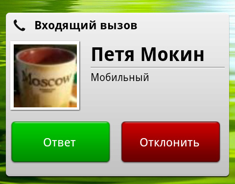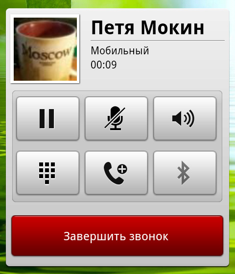 При звонке показывается изображение контакта, в процессе разговора доступны всякие опции.