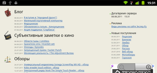 На таком разрешении серфить по сайтам, конечно, одно удовольствие: главное тут - развернуть коммуникатор, чтобы он работал в альбомном режиме. Мой www.exler.ru по горизонтали помещается целиком.