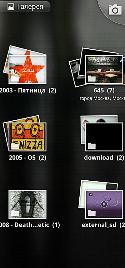 Галерея изображений - также стандартная. Группировка по датам или по папкам, слайд-шоу, различные виды отправки (онлайновые сервисы, социальные сети).