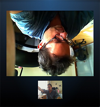У некоторых ноутов есть подобная проблема на Linux. Изображение, при использовании стандартного драйвера, перевернуто. Причиной этого является установка матрицы камеры в перевернутом состоянии.