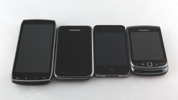 ICONIA SMART, Samsung Galaxy S, iPhone 4, BlackBerry Torch 9800