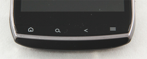 Лицевая панель практически целиком закрыта стеклом, в самом низу - панель с традиционными андроидными кнопками управления: домой, поиск, возврат, меню.