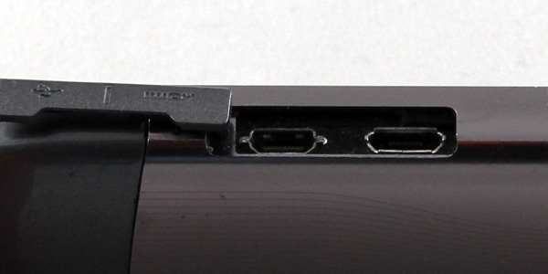 На левом торце специальная стальная заглушка закрывает два порта: microHDMI и microUSB.