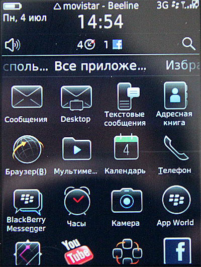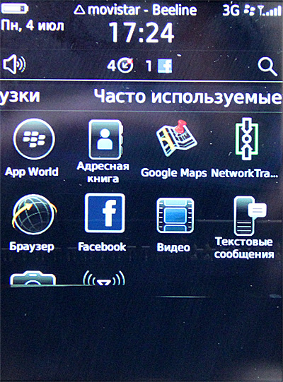 Несмотря на то что разрешение экрана здесь оставляет желать лучшего, само качество дисплея - очень и очень хорошее. Я долго и нудно сравнивал экран этого BlackBerry с Retina-дисплеем четвертого айфона - разницы не заметил. Ну разве что у айфона больше помещается на экран и четче выглядят приложения - все-таки разрешение заметно больше. Но качество - практически одинаковое. И на прямом солнце что на айфоне, что на BlackBerry еще что-то видно, в отличие от многих других коммуникаторов.
