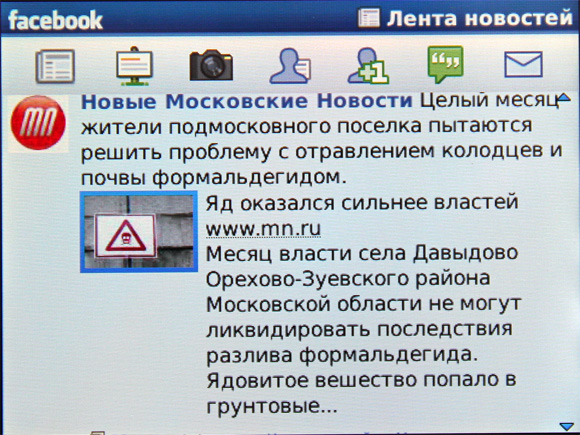 Хорошая интеграция со всякими соцсетями - Facebook, MySpace, Twitter, "Вконтакте" и прочие. Мне они вообще все до фонаря, я кроме Facebook ничем не пользуюсь. У Facebook приложение приличное, хотя мне удобнее пользоваться все-таки самой страницей Facebook в браузере.
