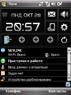 На мой взгляд, оболочка очень слабенькая - даже та же HTC Home, уж на что я от нее не в восторге, заметно функциональнее. Впрочем, тут есть и плюс - оболочка, в отличие от HTC Home и всяких Touch Flo приблуд, не жрет память, поэтому данному агрегату 64 мегабайт оперативки вполне хватает. Ну и, кроме того, никто вам не мешает отключить это "Сегодня" и поставить что-нибудь классическое вроде SPB Mobile Shell.
