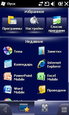 В описаниях этого коммуникатора обычно пишут, что операционная система на нем - Windows Mobile 6.1. Но в моей модели была установлена Windows Mobile 6.5. (Как потом выяснилось, поставляется коммуникатор все-таки с 6.1, но можно скачать и установить прошивку с 6.5.) Однако в любом случае что WM 6.5, что WM 6.1 я уже неоднократно описывал при обзоре коммуникаторов, поэтому поговорим только о том, чем данное устройство отличается.