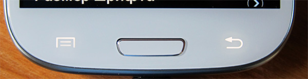 Кнопка Home - удобная, продолговатая и размещается внизу корпуса по центру. Слева и справа от нее - сенсорные кнопки "Возврат" и "Меню". Когда кнопки не светятся, на белом фоне они вообще не видны. Свечение этих кнопок настраивается - можно сделать так, чтобы они горели всегда.