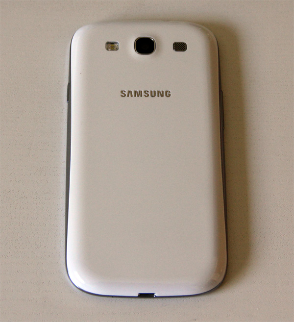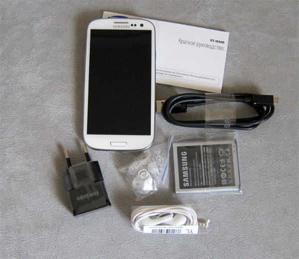 Кстати, Samsung Galaxy S III, насколько я понял, выпускается только в трех видах: керамически-белый, мраморно-белый и синий. Черного варианта нет. На мой взгляд, лучше всех смотрится керамически-белый (это как у меня). Синий я в руках повертел, мне он не понравился.