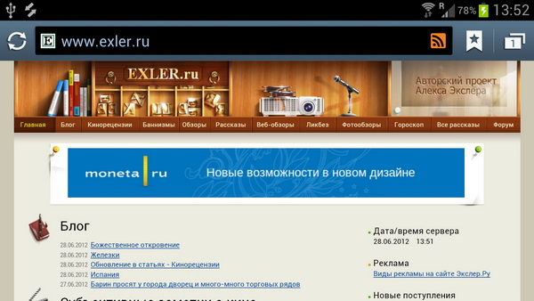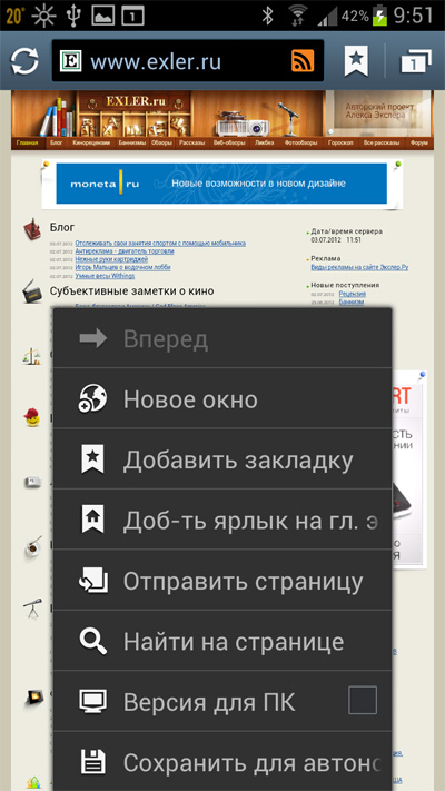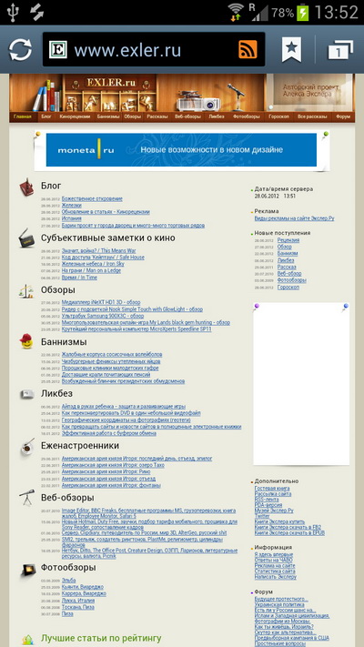 У встроенного браузера есть странная особенность. В нем, как выяснилось, отдельно настраиваются параметры яркости экрана - через меню. Поначалу это очень удивляло - в системе выставлена одна яркость, заходишь в браузер - там яркость в два раза ниже. Оказывается, это настраивается. Но вот зачем так сделано - непонятно.