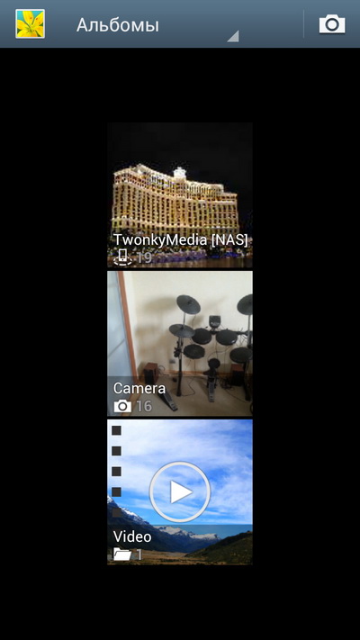 Галерея умеет показывать альбомы с изображениями и видео не только с телефона, но и с сетевых устройств.