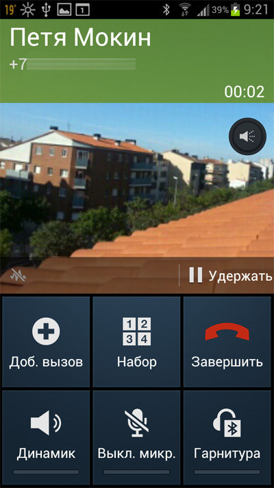 Телефонное приложение - типовое самсунговское (кстати, очень неплохое, особенно радует строка поиска контакта сверху, чего нет в базовом приложении Android).