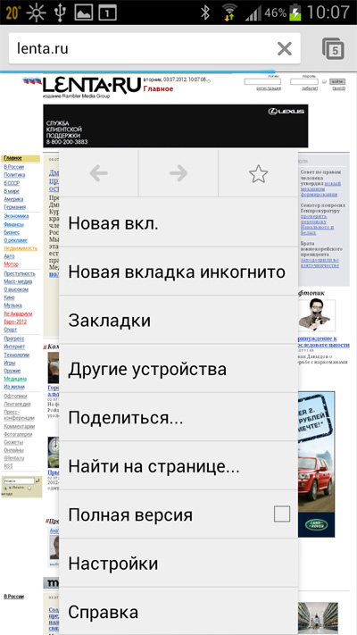 Впрочем, на Android я предпочитаю использовать мобильную версию Chrome, тем более что она отлично работает с закладками гугловского аккаунта.