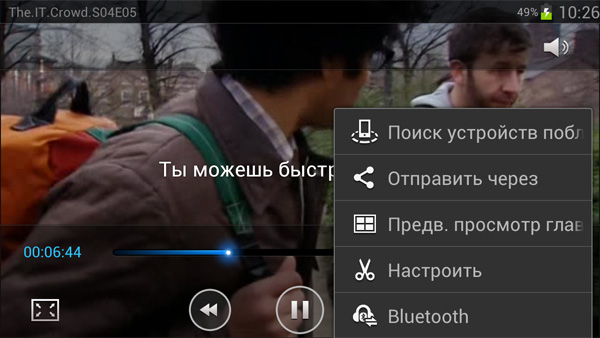 Впрочем, я для видео обычно использую MX Player Pro - просто чтобы не задумываться, какие кодеки-контейнеры я закачиваю для просмотра. Он играет все и делает все, что мне нужно: умеет подцеплять субтитры, менять аудиодорожки и так далее.