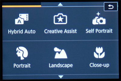 В режиме программного автомата также добавляются выбор режима фокусировки (отслеживание лиц), баланс белого, стиль картинки, автокорректировка яркости и контраста и вид замера экспозиции.