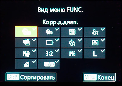 Возможности вывода информации на экран тут откровенно убогие, я даже удивился. И это в камере, которая позиционируется как "вторая камера для профессионалов".