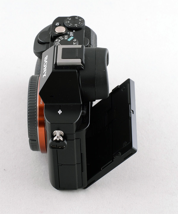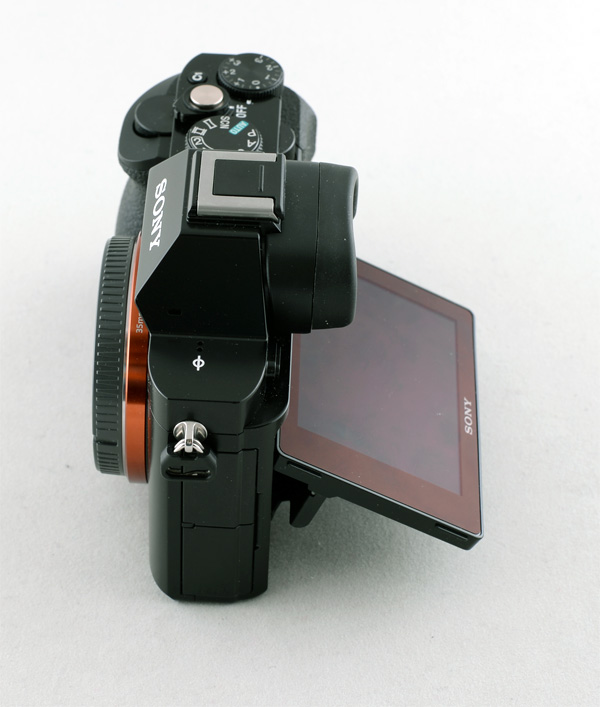 Дисплей тут поворотный, сделан в традиционном для Sony стиле: он может отгибаться вверх для съемки снизу и вниз для съемки сверху.